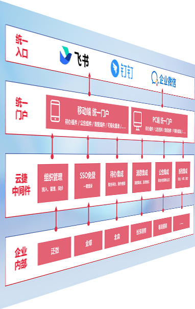对协作平台提供支持服务,,支持企业应用与协作平台对接,,,,包含组织同步、、、消息集成、、、、待办集成等。。支持目前主流的协作平台:钉钉、、、、企微和飞书。。。。